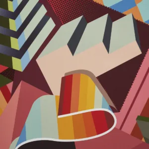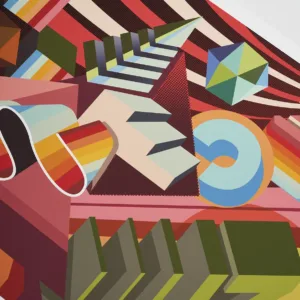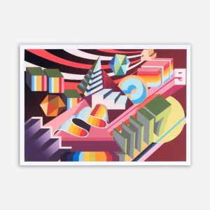 Step into a playful dreamworld with this vibrant geometric art print, where bright colors and surreal shapes come together in an imaginative fantasy. This artwork breaks free from the constraints of logic, creating a visually striking landscape where architectural forms and rainbow hues blend seamlessly with abstract mathematical structures. It’s a place of infinite possibilities and creative freedom, where the rules of reality simply don’t apply. Perfect for fans of surrealist art, abstract design, and those who appreciate the fusion of geometry and vibrant color, this print makes a bold statement in any space. Whether you’re decorating a modern home or an urban loft, this piece will add energy and imagination to your walls. Buy this geometric art print now on StreetArte.com and bring a touch of playful surrealism into your life.