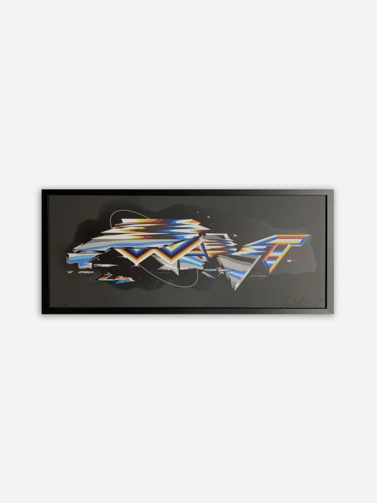 Pantone’s unique aesthetic is characterized by bold geometric patterns, vibrant gradients, and a sense of dynamic movement. His art often explores the intersection of technology, futurism, and the fast-paced digital age, reflecting the energy and complexity of the modern world.